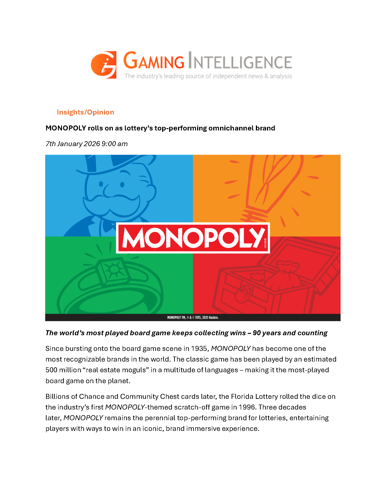 MONOPOLY Rolls on as Lottery’s Top-Performing Omnichannel Brand