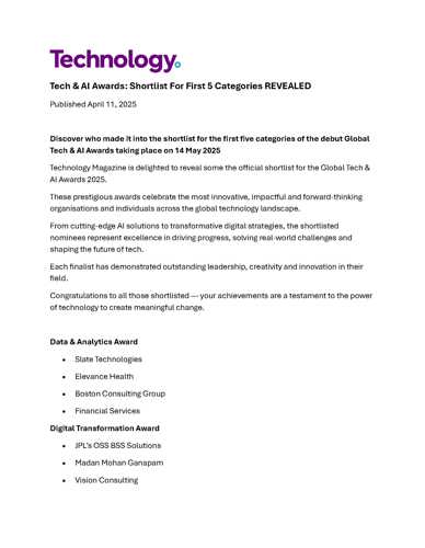 Tech & AI Awards: Shortlist For First 5 Categories REVEALED